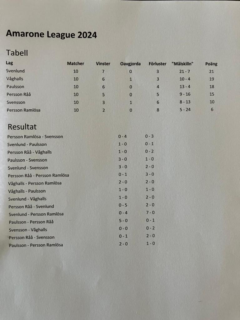 | Lena/Mats | 4 | 2 | 0 | 8 | 5-24 | 6 |