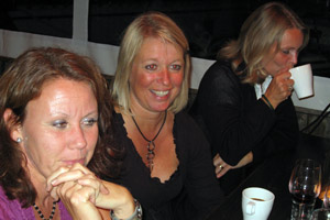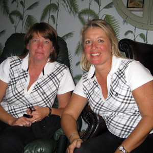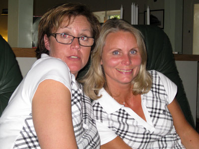 Detta innebar att slutsegraren var Åsa. Hon ville ju gärna bli kontaktad så fort allt var klart (undrar om det var för att hon ville veta hur mycket tax-freevaror hon skulle kunna köpa på hemvägen? Det blir ju trots allt en liten slant i prispengar.) Så snälla och tillmötesgående var vi inte, vi höll henne på halster. Glad i hågen lämnade vi golfbanan för att checka in på hotell Briggen. En snabb urlastning, in med grejorna på rummen och samling i sofforna med diverse dryck och tilltugg. Härligt! Prisutdelning och tacktal i vanlig ordning. Lena strålade i kapp med Cecilia som blev årets korthålsdrottning, grattis!