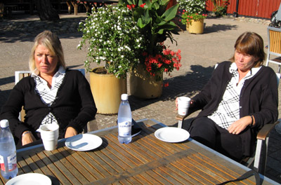 Klockan 19.30 väntade borden på restaurang Åmund. Där åt och drack vi gott. De flesta inmundigade deras specialare – ribs. Kvällen var sensommarvarm och vi njöt i fulla drag! När notan var betald styrde vi åter kosan mot Briggen och våra medhavda drycker. Det finns ju många viktiga saker som måste avhandlas när ett gäng tjejer träffas och det kan hålla de flesta vakna länge. Men en hel dag utomhus, efter att ha stigit upp i ottan (med undantag för Jessica då) sätter sina spår, ögonlocken blir tunga. Jag var den första att lämna in. Tror att jag somnade innan huvudet sjunkit ner på kudden. Resten av gänget blev inte heller långvariga.