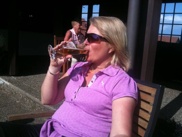 Vi satt ute i solen och tog en svalkande öl efter rundan och på bara 5 minuter drog dimman in och det blev helgrått. Denna dimma låg sedan kvar hela kvällen men det gjorde inte så mycket eftersom vi själva blev lite dimmiga efter några bag-in-box!