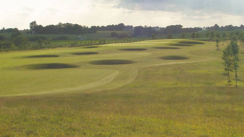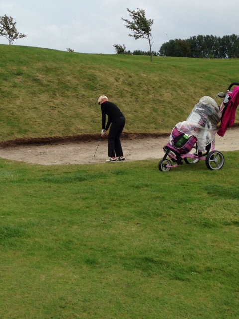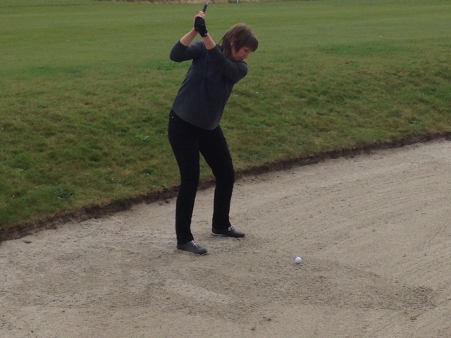Tidigt på lördagsmorgon körde vi till Abbekås. Otroligt många bunkrar kännetecknar denna bana, t ex hål 17 med totalt 15 bunkrar. Tur att vi inte visste vad som väntade….