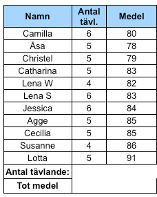 På årets tour kommer vi att räkna de 3 bästa resultaten per spelare.